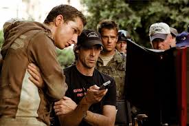 Bay on set of his film Transformers with Shia LaBeouf